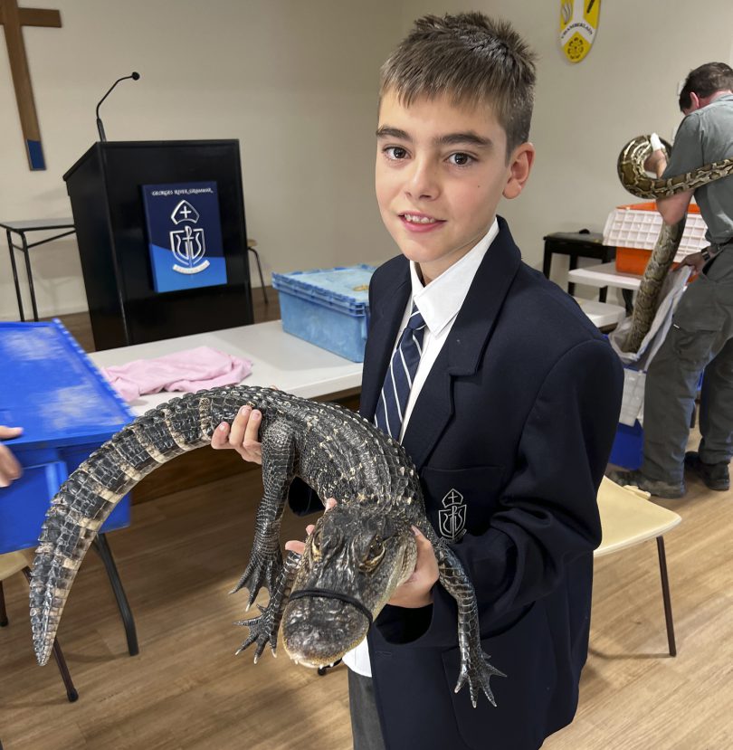 THERE was a Star Tortoise, a Burmese Python, a baby American Alligator, a Pygmy Bearded Dragon, a Cane Toad and even a friendly Blue Tongue Lizard among others waiting to greet Year 7 students to class at Georges River Grammar earlier this month.