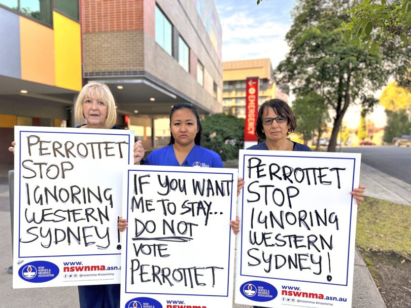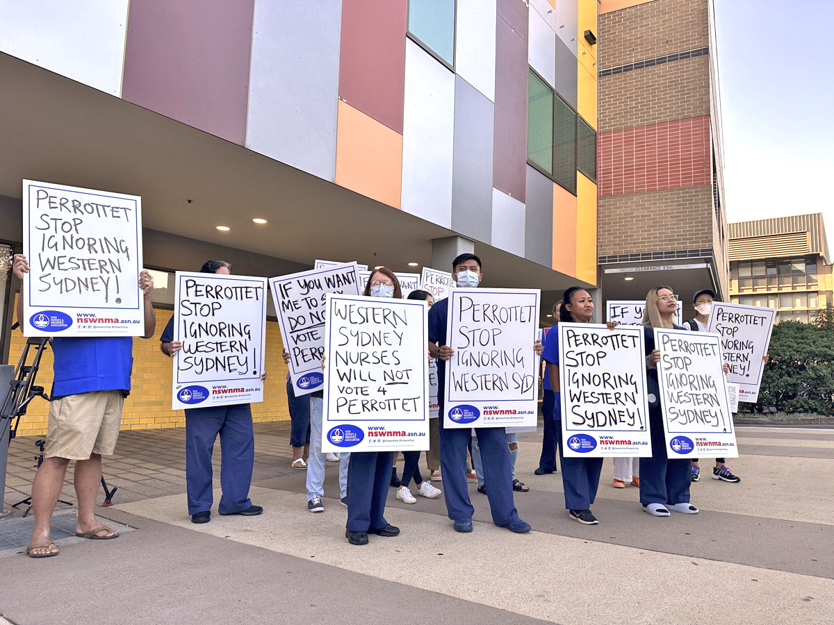 Many rallied outside Auburn Hospital last week, calling on all election candidates to support the introduction of a safe nursing and midwifery ratio system on every shift, in every hospital in NSW and urge locals to use their vote to support the introduction of safe staffing ratios in public hospitals.